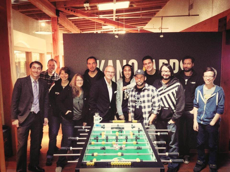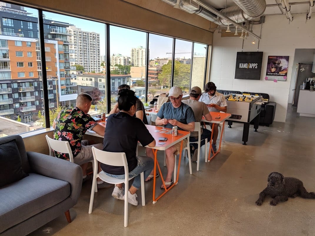 From Bastion Square, we moved to 539 Herald St, where we were really able to create a space of our own (we got a sign 🎉), became addicted to foosball, and got to know our community. Coffee ☕ and beer 🍺 culture grew, being that our office was over Union Pacific coffee and the quick stroll to Phillips for growler fill-ups became a weekly tradition for team members. We can also lay claim to being some of the first regulars at the popular Jam Cafe! If you don’t believe us, ask Brent, a longstanding product leader at Kano. At Herald, we started to gain local notoriety through our successes and were often part of tours to show folks what was happening in Victoria’s tech community, which was often hidden from downtown storefronts but very much alive on the second floors of retail businesses. 🌎🏡